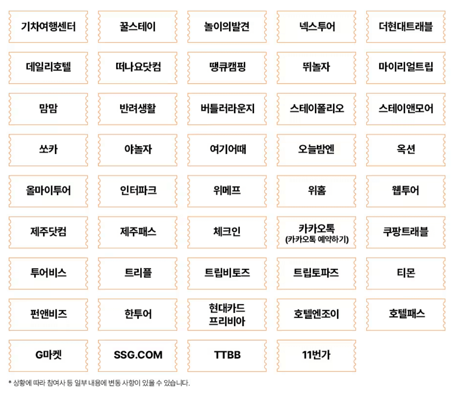 19개 업체가 참여합니다. 확실히 추석 대비해서 참여 업체수가 많은 것은 아니지만, 우리가 일반적으로 많이 사용하는 여행사들이 많이 있어서 사용하시는데 큰 불편함이 없으실 것 같습니다.